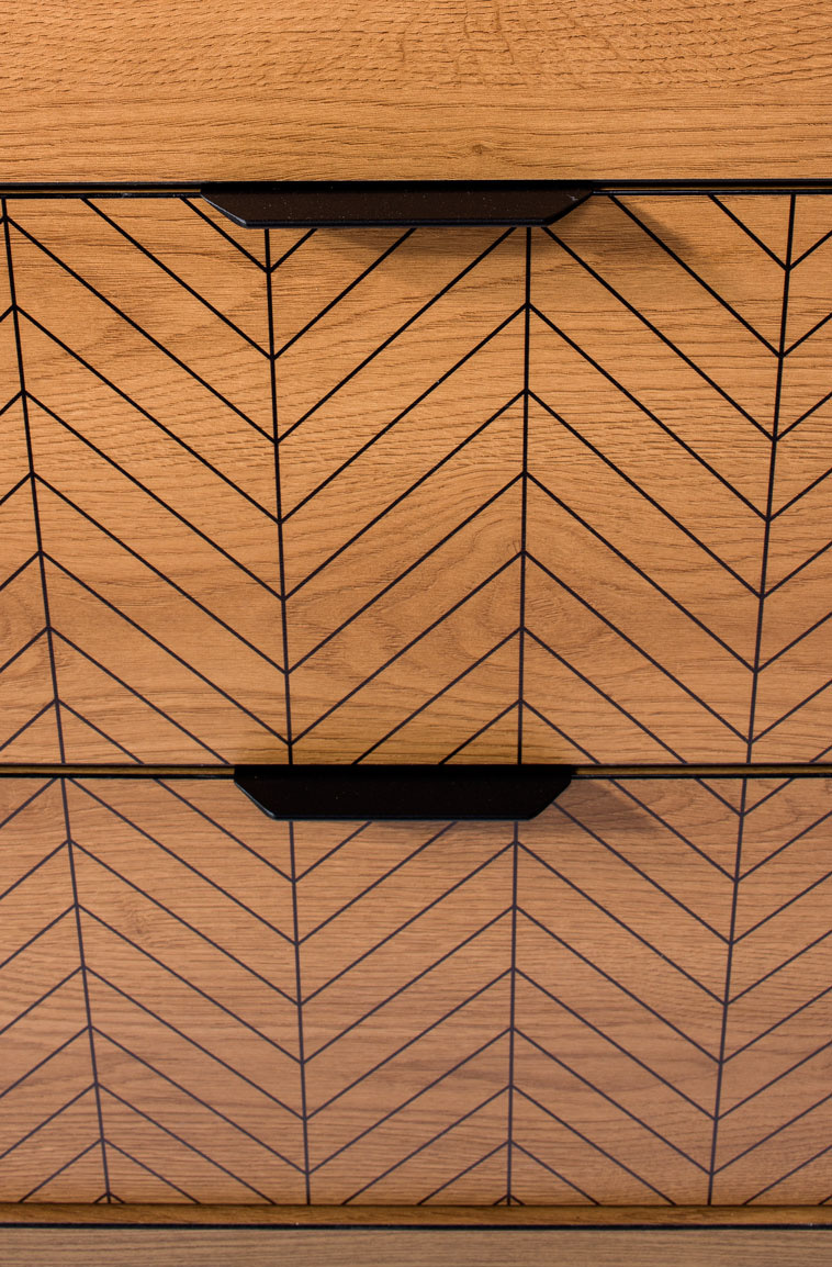 Sektor je ve stylu moderní elegance. Charakteristickým znakem nábytku je jeho stylové a elegantní zdobení na přední části.