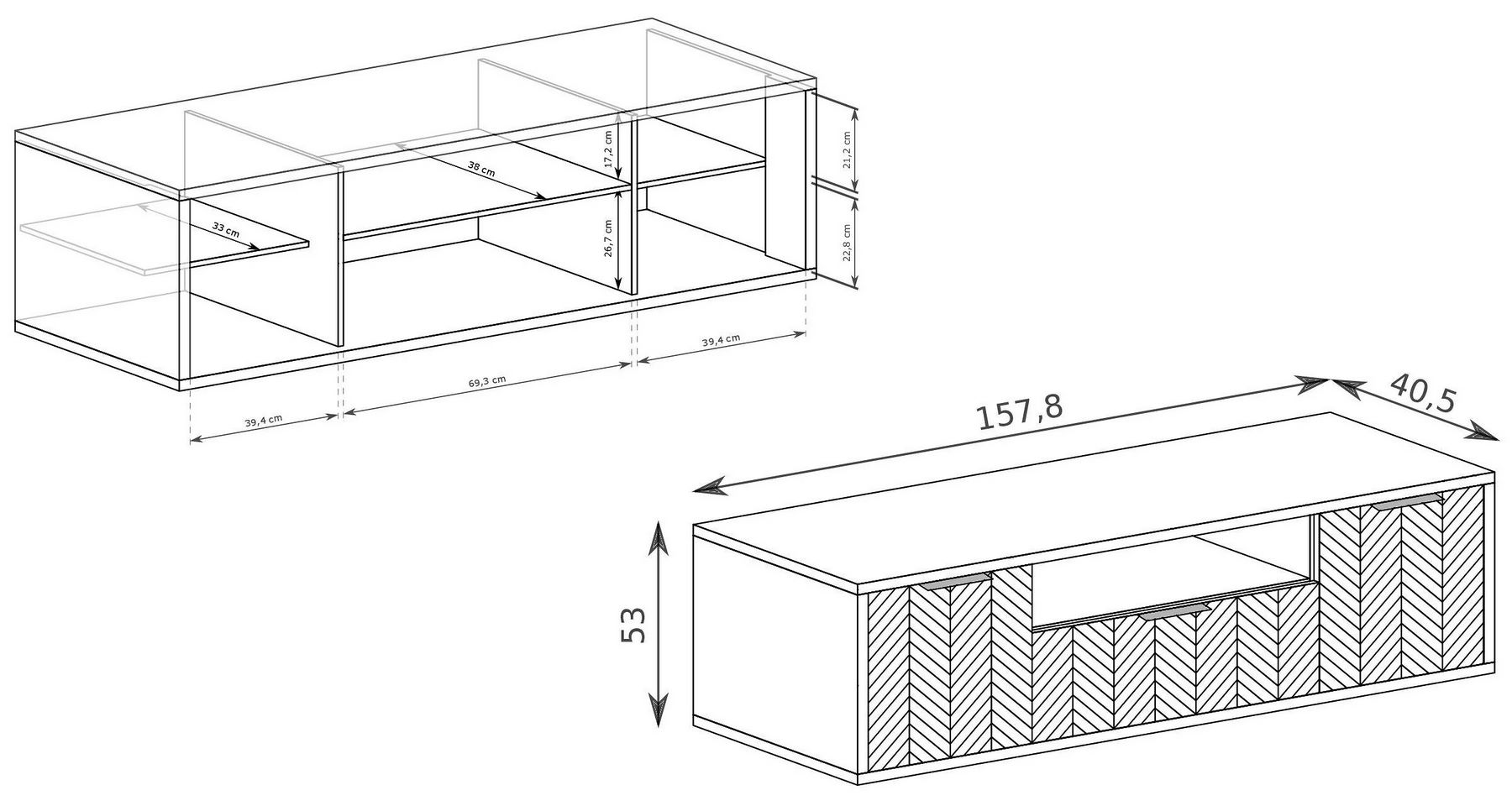 Televizní stolek je vyroben z kvalitních LTD desek. Jsou nenáročné na údržbu. Hrany jsou chráněny ABS hranou. Zadní část nábytku je z HDF desky.