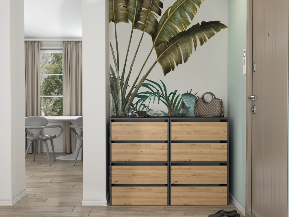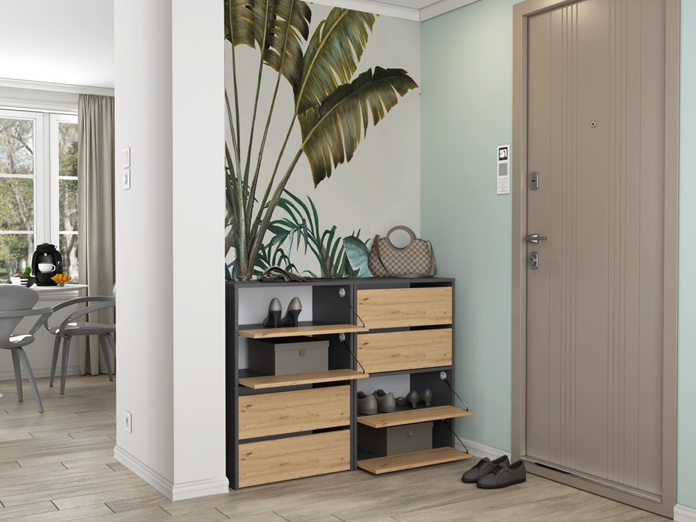 Moderní botník Modis bez úchytek je ideální volbou do každé předsíně. Pečlivé zpracování a elegantní linie dodají vaší předsíni styl i praktický úložný prostor. Botník je modulární - můžete jej prakticky libovolně rozšiřovat. Nábytek je vyroben z vysoce kvalitního lamina, které je snadno udržovatelné a odolné proti oděru.