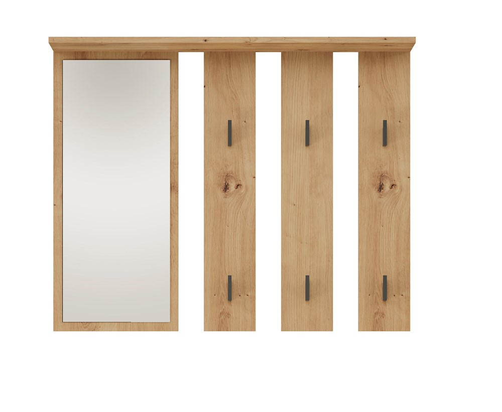 Nástěnný věšák se zrcadlem a policí Pargas splní očekávání všech, kteří oceňují kombinaci elegance a praktičnosti. Je ideálním řešením pro každou předsíň – ať už malou, nebo prostornou. Nábytek je vyroben z kvalitního lamina, které je snadno udržovatelné a odolné proti oděru, dlouhou životnost nábytku zajišťují hrany zakončené odolným ABS materiálem.