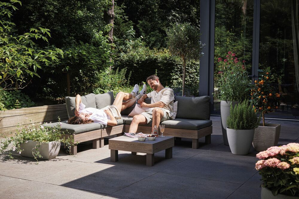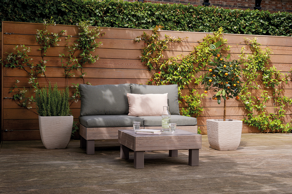 Set ELEMENTS Vám umožní uspořádat si moderní venkovní posezení dle Vašich představ. A když budete občas potřebovat více křesel místo sofa, nebo jiné uspořádání, není to pro set problém. Díky chytrému modulárnímu systému, který nabízí mnoho možných konfirgurací, jednoduše přemístíte a zacvaknete jednotlivé prvky na požadované místo. Pro ještě větší pohodlí jsou součástí soupravy 9 cm vysoké podušky a opěrky. Podušky jsou z příjemného materiálu polybavlna a spodní část je z netkané textílie s protiskluzovým tečkami. Pevný lisovaný plast, z kterého je souprava vyrobena, je odolný vůči nepříznivým povětrnostním podmínkám a UV záření. Výhody soupravy ELEMENTS: jednoduchá montáž snadná údržba kompaktní způsob uskladnění, zabírající miminum místa pevný materiál připomínající dřevo kovové spojkyobsah setu: | sofa + 2x křeslo + stůl |
