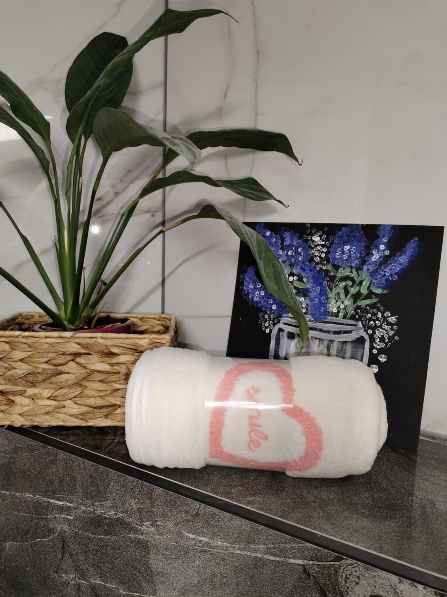Osuška Srdce je vyrobena ze 100% mikrovlákna. Je velice příjemná na dotek díky úpravě jemného plyše.
