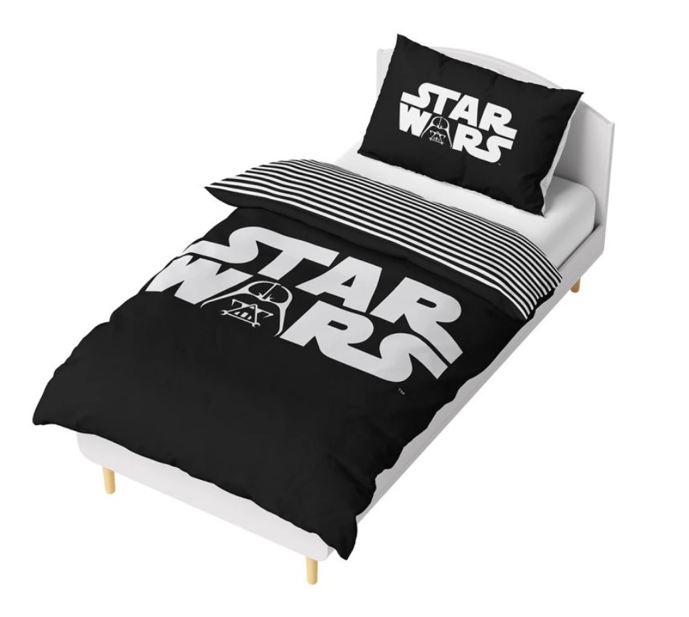 Povlak na polštář je oboustranný, z jedné strany černý a z druhé bílý, s nápisem STAR WARS vytváří dokonalý galaktický komplet