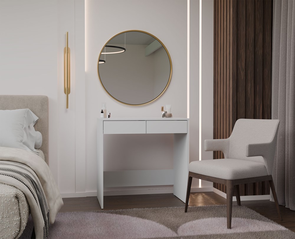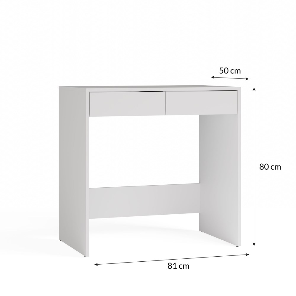 Nadčasový toaletní stolek Marissa je jedinečný kousek - dokonalé řešení pro ty, kteří hledají spojení funkčnosti a estetiky v každém detailu. Díky svým kompaktním rozměrům je ideální volbou i pro menší místnosti, skvěle se hodí do ložnice, pracovny nebo studentského pokoje. Elegantní bezúchytková čela zásuvek zajistí pohodlné používání a dodají moderní vzhled. Nábytek je vyroben z kvalitního lamina, které je snadno udržovatelné a odolné proti oděru.