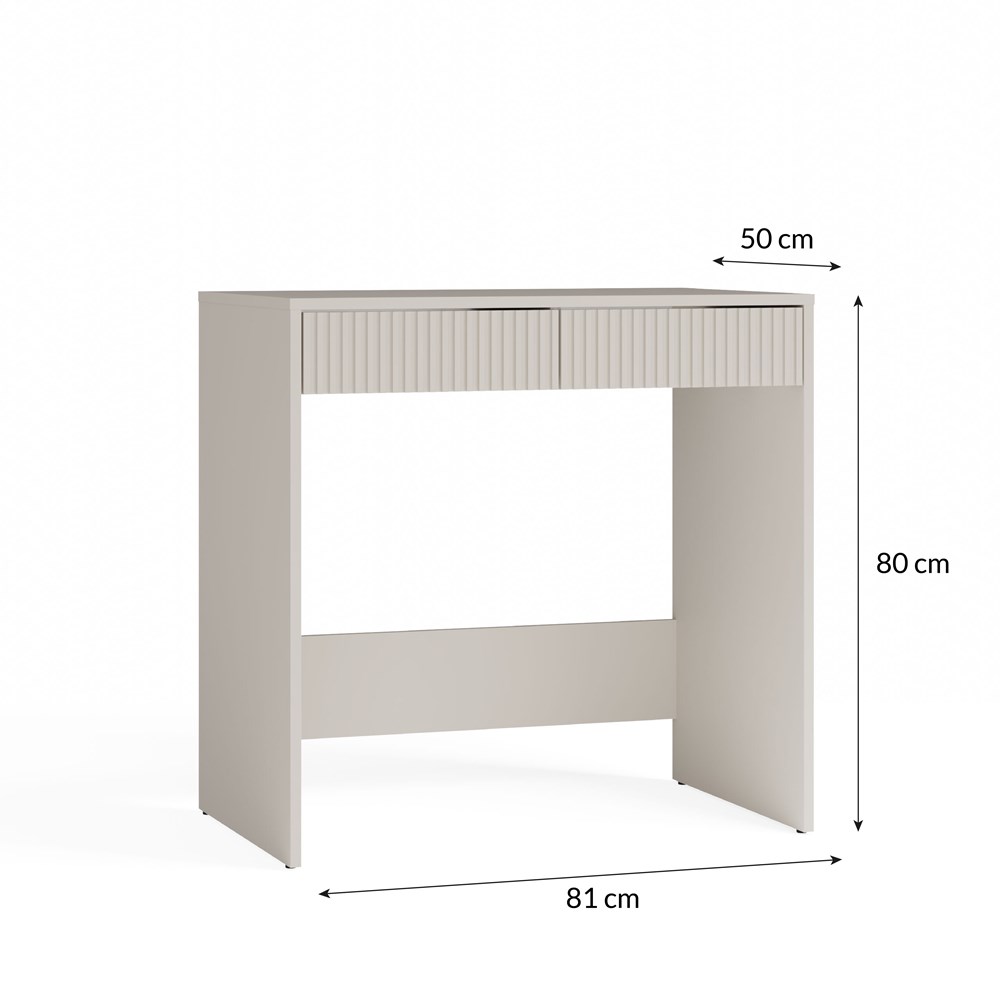 Nadčasový toaletní stolek Marissa je jedinečný kousek - dokonalé řešení pro ty, kteří hledají spojení funkčnosti a estetiky v každém detailu. Díky svým kompaktním rozměrům je ideální volbou i pro menší místnosti, skvěle se hodí do ložnice, pracovny nebo studentského pokoje. Elegantní bezúchytková čela zásuvek zajistí pohodlné používání a dodají moderní vzhled. Nábytek je vyroben z kvalitního lamina, které je snadno udržovatelné a odolné proti oděru.