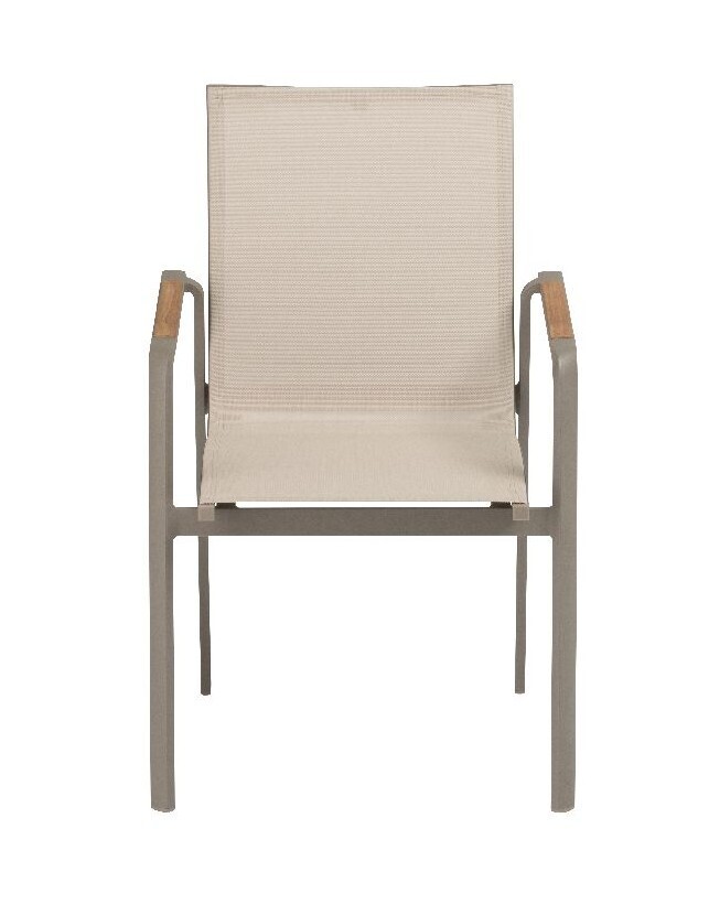 DIAMOND stohovatelné, hliníkové křeslo s teakovými područkami - taupe / béžová