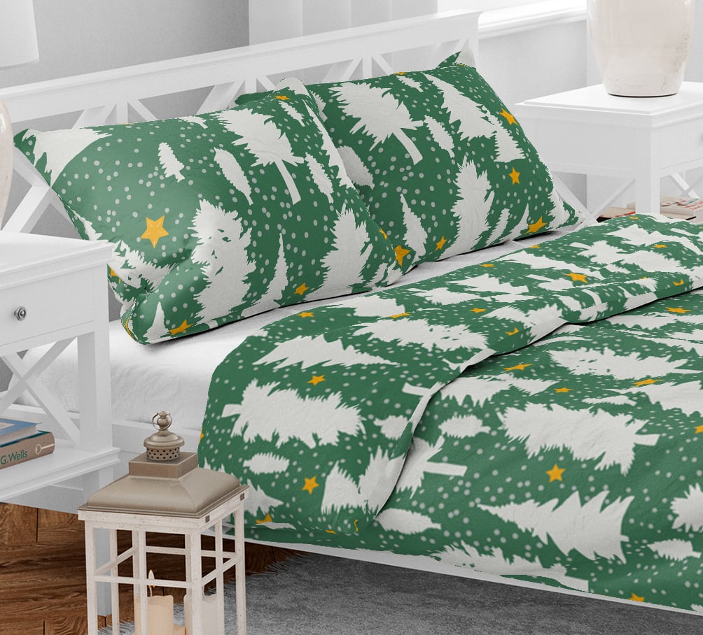 Vánoční bavlněné povlečení Stromky zelené 140x200, 70x90 cm
