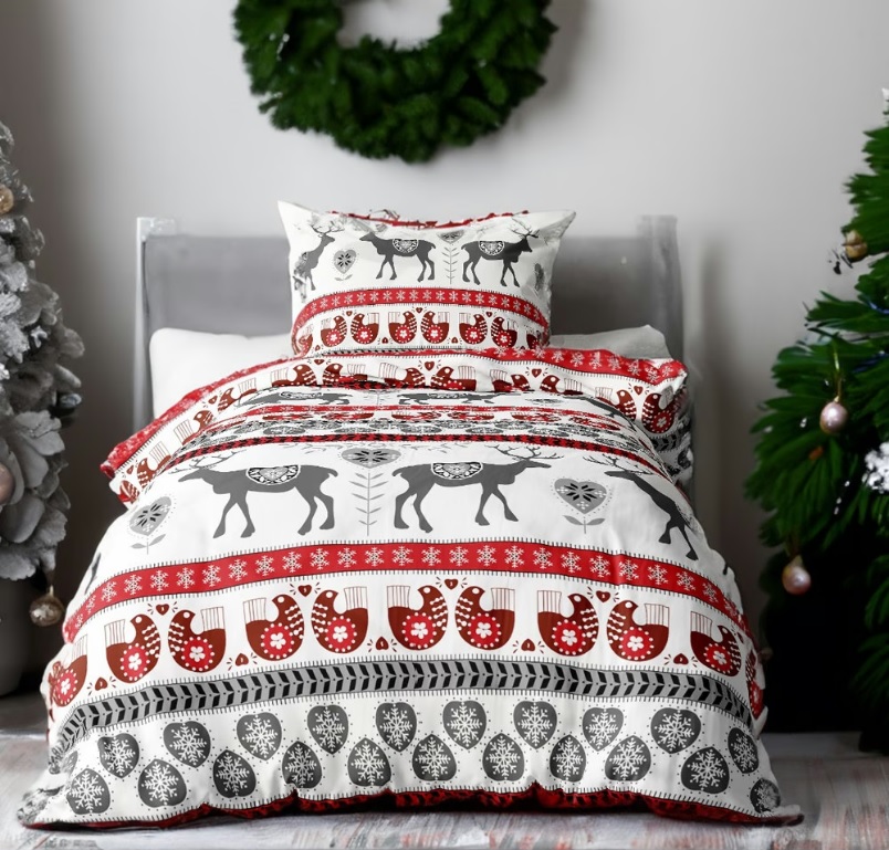 Flanelové povlečení Christmas grey reindeer 140x200, 70x90 cm