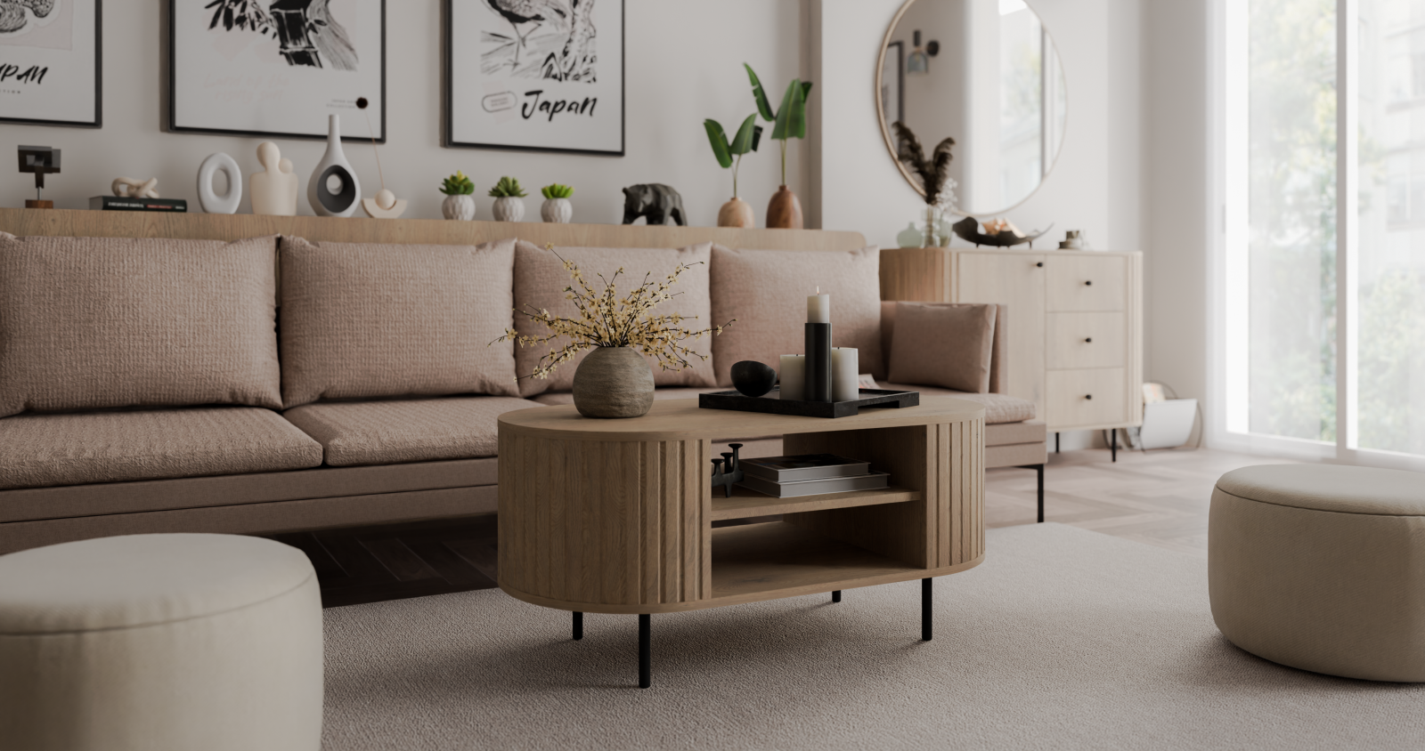 Objevte kolekci nábytku Orvelo, která představuje minimalismus ozvláštněný precizními frézovanými detaily a vnáší do interiéru zcela nový rozměr elegance. Barevné provedení v jemných zemitých odstínech tvoří harmonický základ, černé a zlaté akcenty dodají lehkost a moderní charakter. Kolekce byla navržena tak, aby každý prvek – od vitrín a komod až po konferenční stolky a TV skříňky – mohl být použit samostatně a zároveň ladil jako celek.