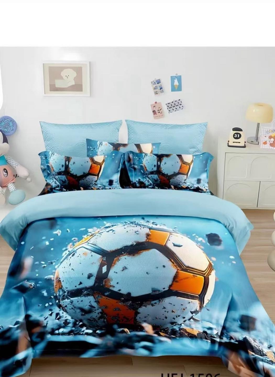 Povlečení Fotbal modrý 3D 140x200, 70x90 cm, 3-dílné