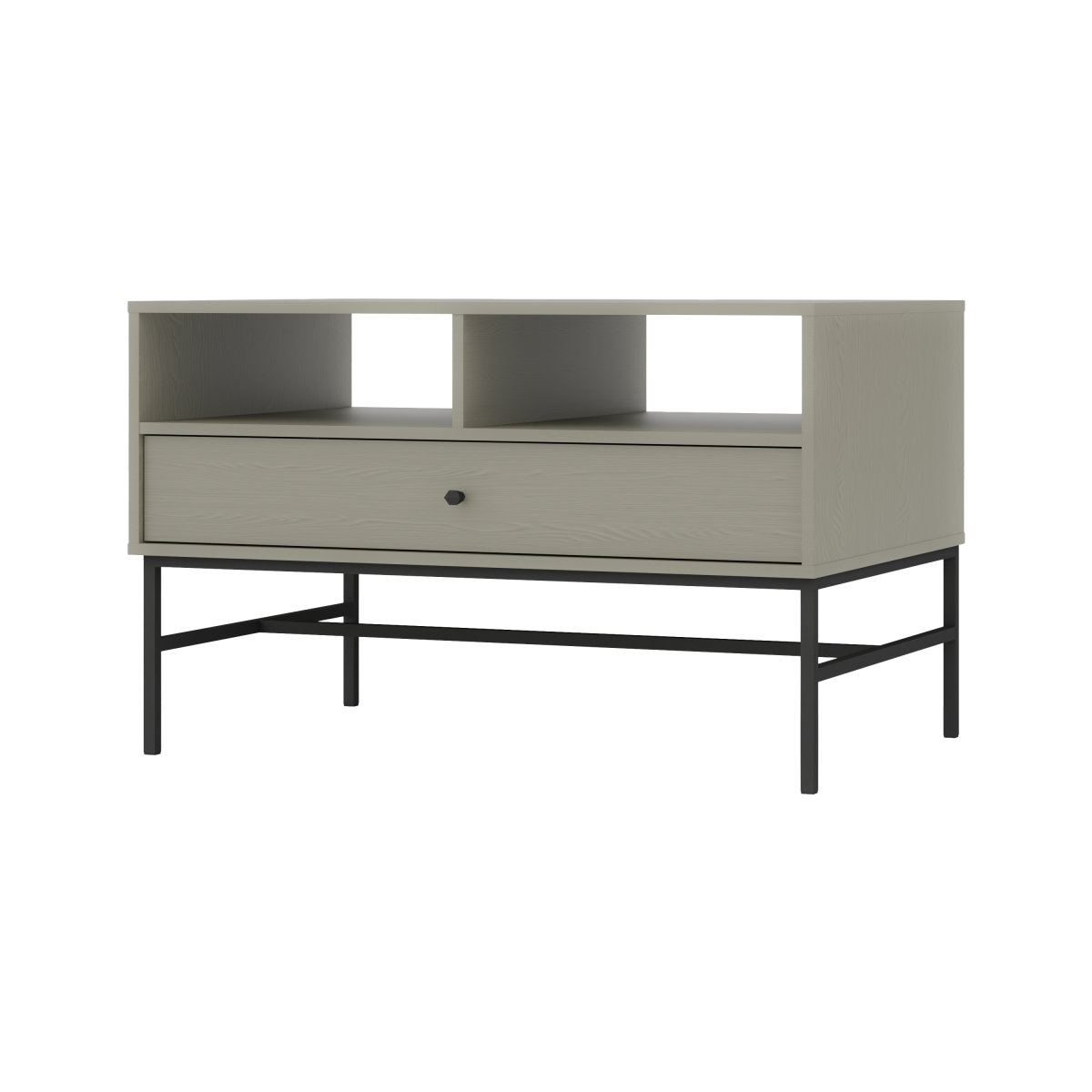 Série Tomila nabízí noční, TV i konferenční stolky, vitríny a komody v široké škále tvarů, barev a typů noh.