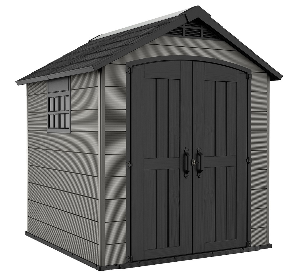 Bezúdržbový domek PREMIER má robustní konstrukci a je vyroben z pevných, dvojitých, plastových stěn. Je také vybaven pevnou designovou střechou, širokými dvojitými dveřmi a podlahou pro náročné použití s nosností 150kg na m2. Domek je ideální nejen na uschovávání nářadí a zahradních doplňků, ale také na sekačku nebo grill. Jeho hlavní výhody jsou stabilní, zpevněná ocelová konstrukce, pevná střecha a široké dvojité dveře. Všechny domky Keter jsou vybaveny vysoce odolnou podlahou. Zatížení střechy až 100 kg/m2, odolnost vůči větru do 145 km/hod (platí v případě ukotvení). výhody:- Dvojitá stěna odolná proti povětrnostním vlivům s ocelovou výztuží- Široké dvojité dveře, viktoriánské okno a světlíky- Vysoká podlaha- Robustní strop- Vysoký strop- Zajišťovací systém z ušlechtilé oceli (zámek není součástí dodávky)| šířka výrobku: | 228 cm |