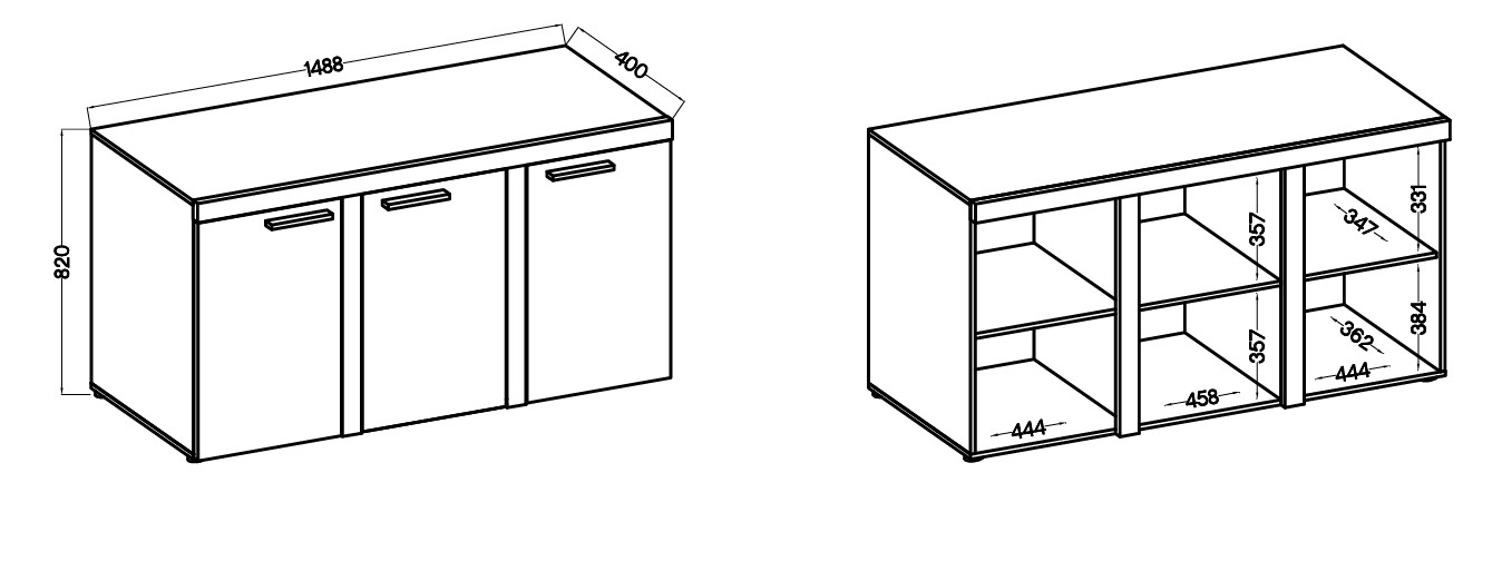 rozměry: šířka: 148,8 cm, hloubka: 40,5 cm, výška: 82 cm
