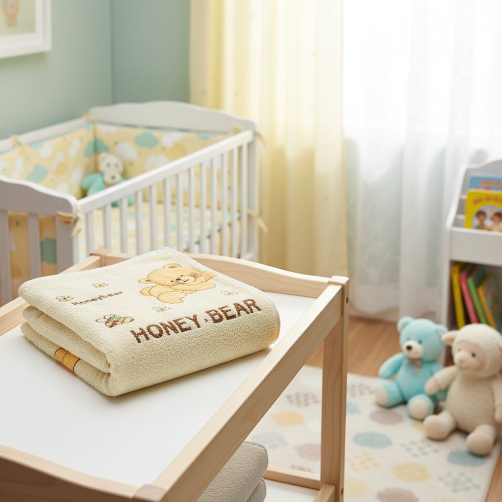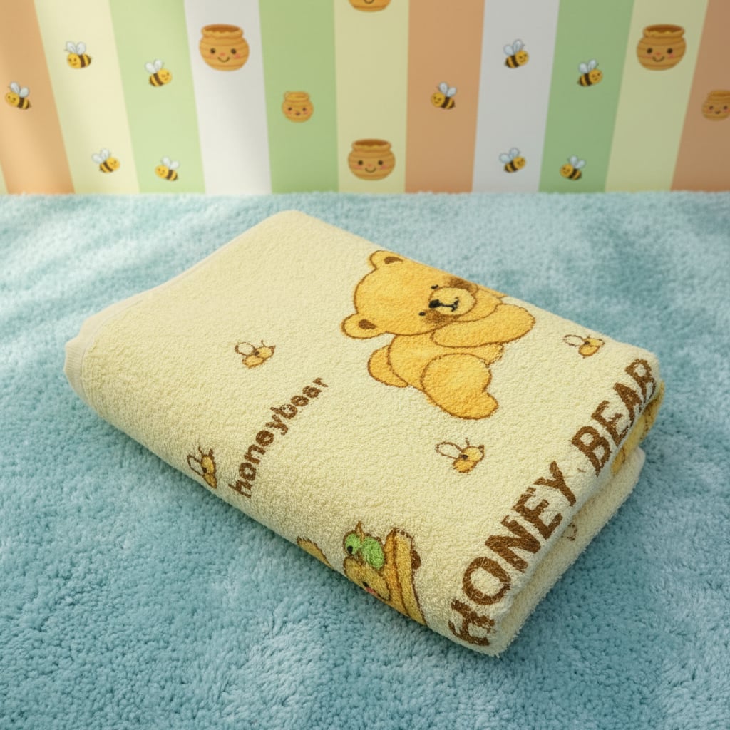 Osuška Medvídek je vyrobená z froté. Je velice příjemná na dotek.