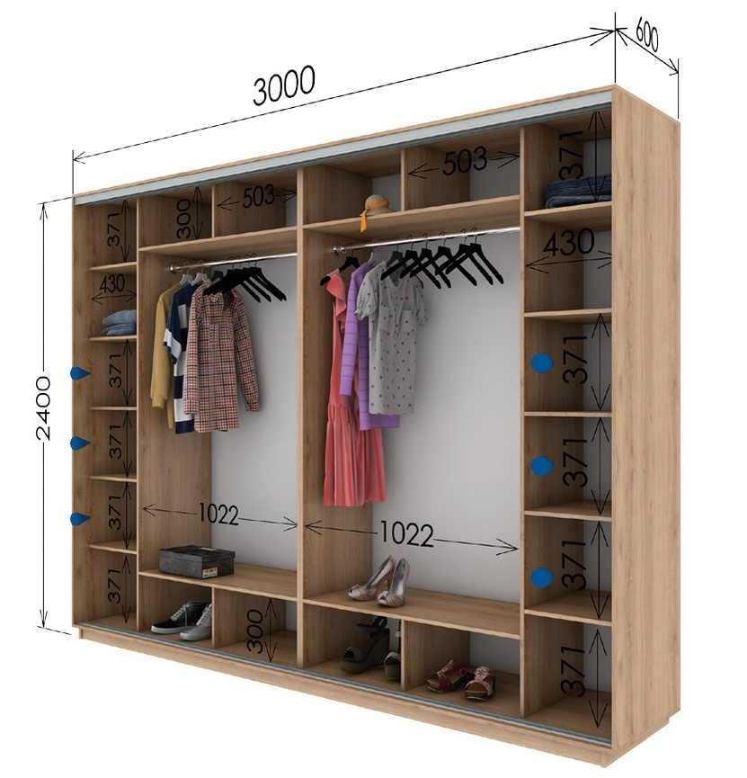 Šatní skříň GAMMA 300/240 dub sonoma/zrcadlo