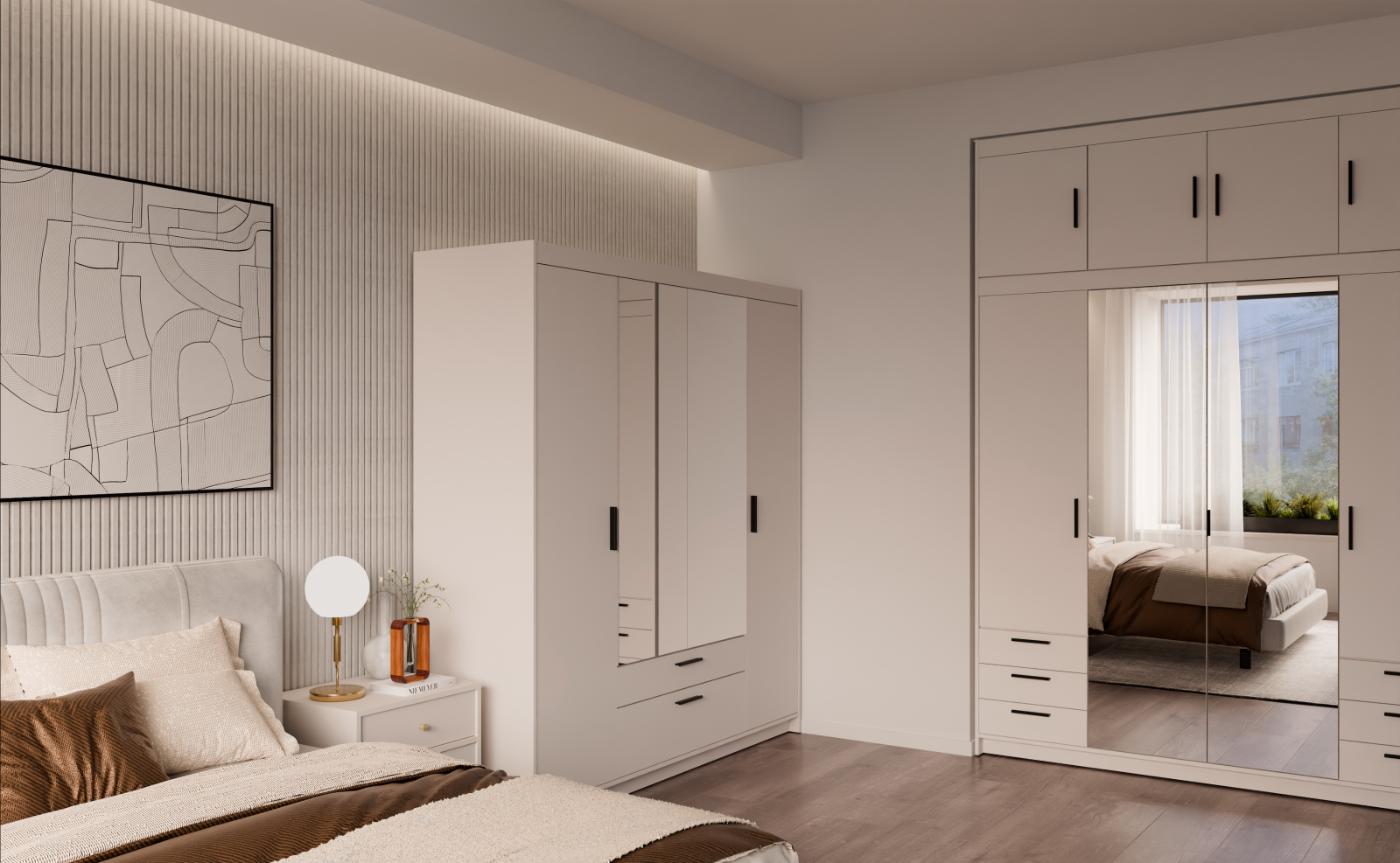 Skříň Enja 4D2S se zrcadlem písková béžová