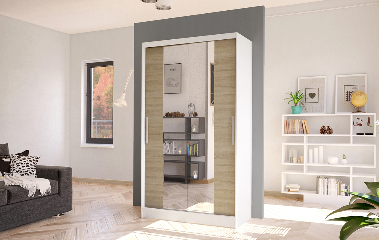 Korpus i dveře jsou vyrobeny z odolné 16 mm laminované desky s ABS hranami, které zajišťují dlouhou životnost. Posuvné dveře se hladce pohybují po hliníkových vodicích lištách. Skříň je dostupná v několika atraktivních barevných provedeních, takže ji snadno sladíte s ostatním nábytkem.