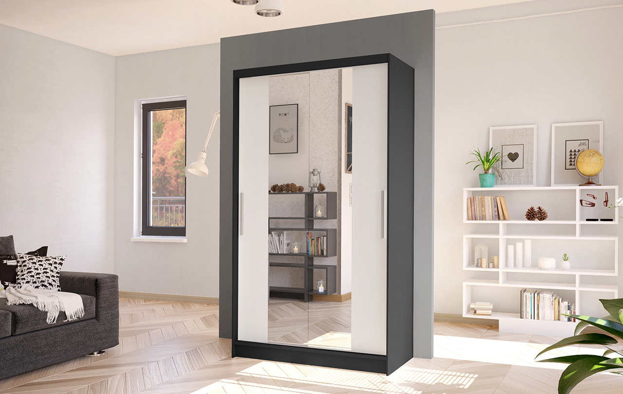 Korpus i dveře jsou vyrobeny z odolné 16 mm laminované desky s ABS hranami, které zajišťují dlouhou životnost. Posuvné dveře se hladce pohybují po hliníkových vodicích lištách. Skříň je dostupná v několika atraktivních barevných provedeních, takže ji snadno sladíte s ostatním nábytkem.