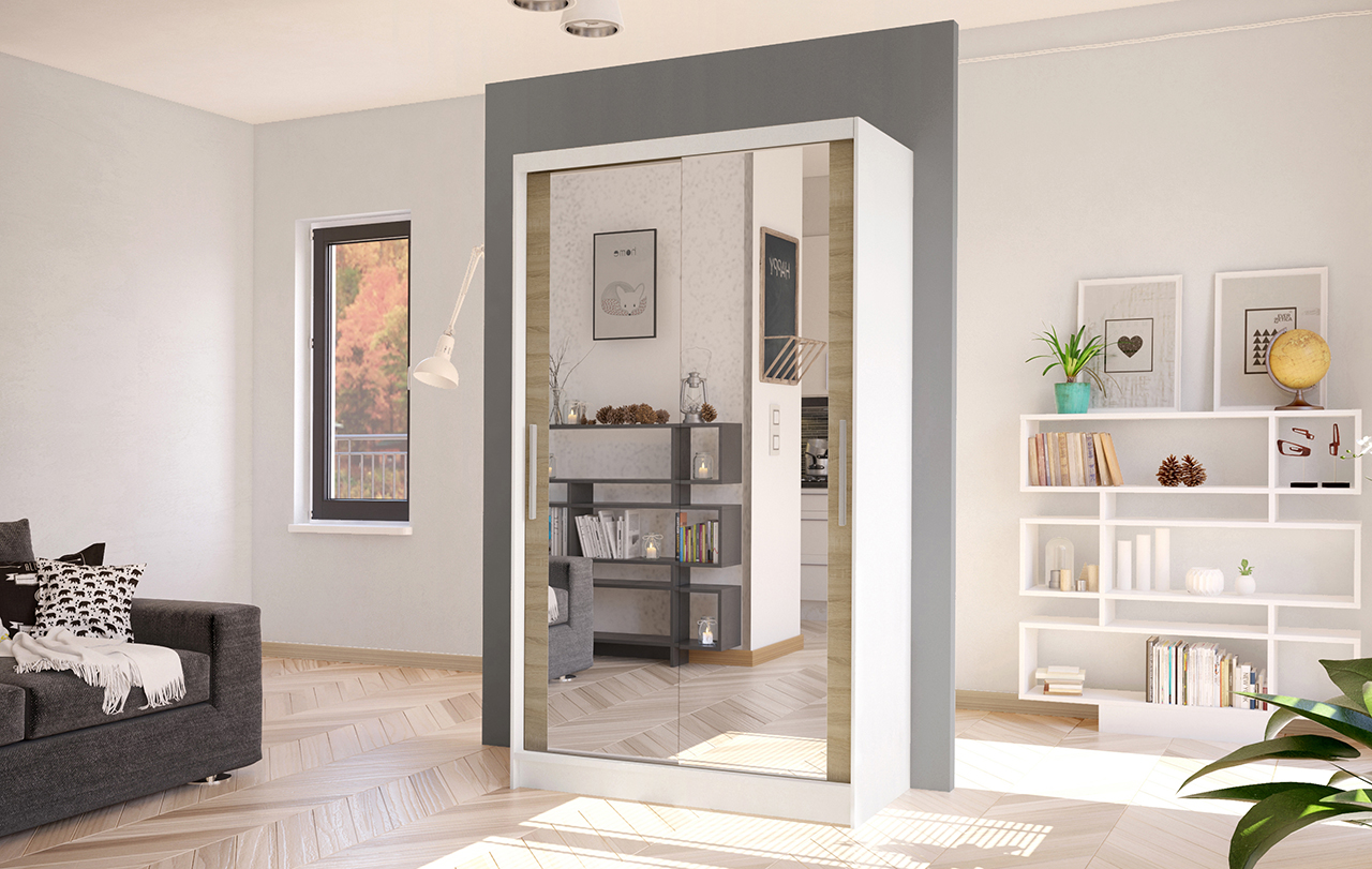 Korpus i dveře jsou vyrobeny z odolné 16 mm laminované desky s ABS hranami, které zajišťují dlouhou životnost. Posuvné dveře se hladce pohybují po hliníkových vodicích lištách. Skříň je dostupná v několika atraktivních barevných provedeních, takže ji snadno sladíte s ostatním nábytkem.