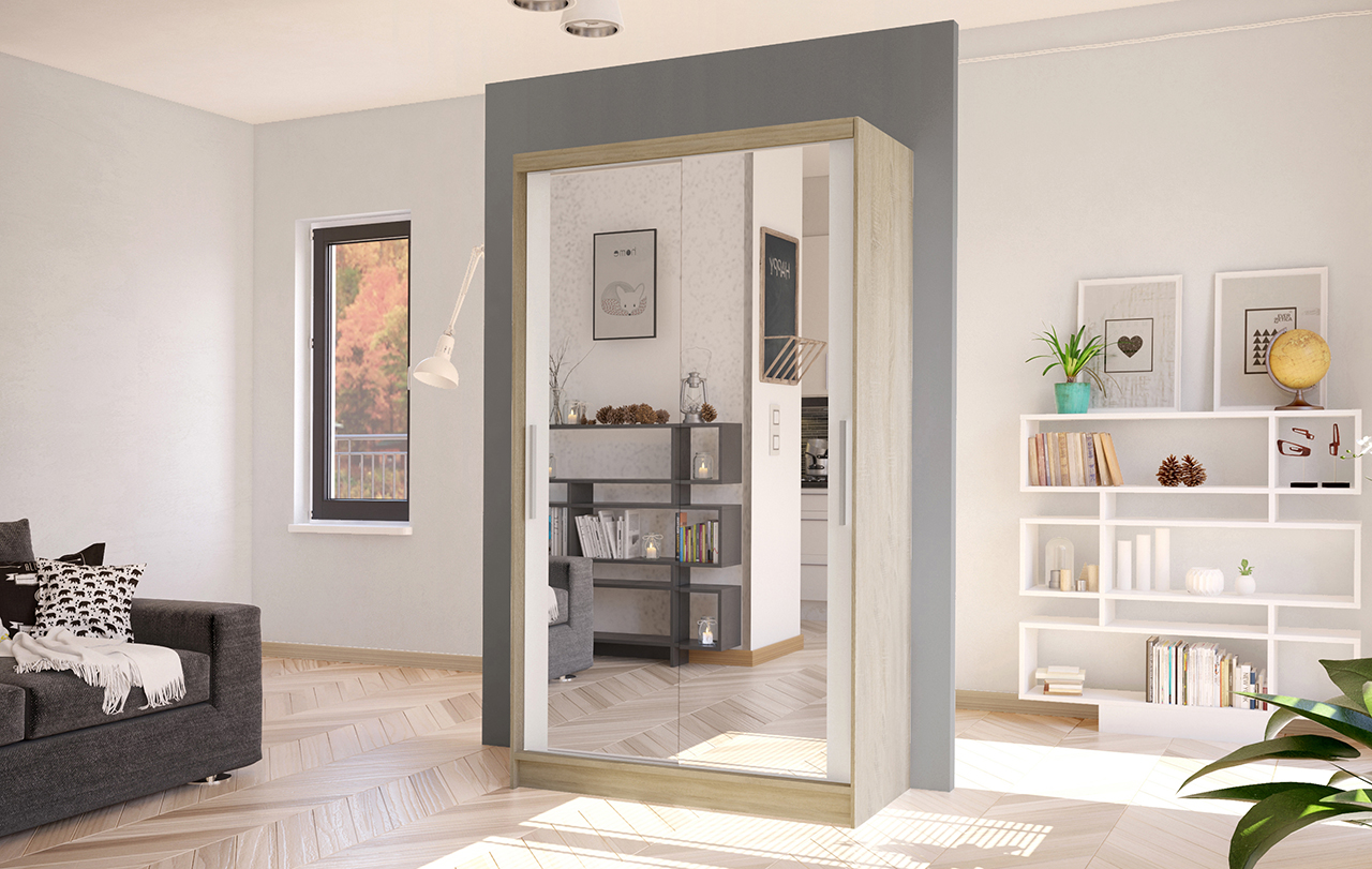 Korpus i dveře jsou vyrobeny z odolné 16 mm laminované desky s ABS hranami, které zajišťují dlouhou životnost. Posuvné dveře se hladce pohybují po hliníkových vodicích lištách. Skříň je dostupná v několika atraktivních barevných provedeních, takže ji snadno sladíte s ostatním nábytkem.