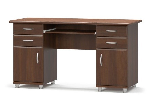 Nabízí množství odkládacího prostoru v podobě dvou zavřených skříněk a čtyř zásuvek. Oceníte také výsuvnou desku na klávesnici.