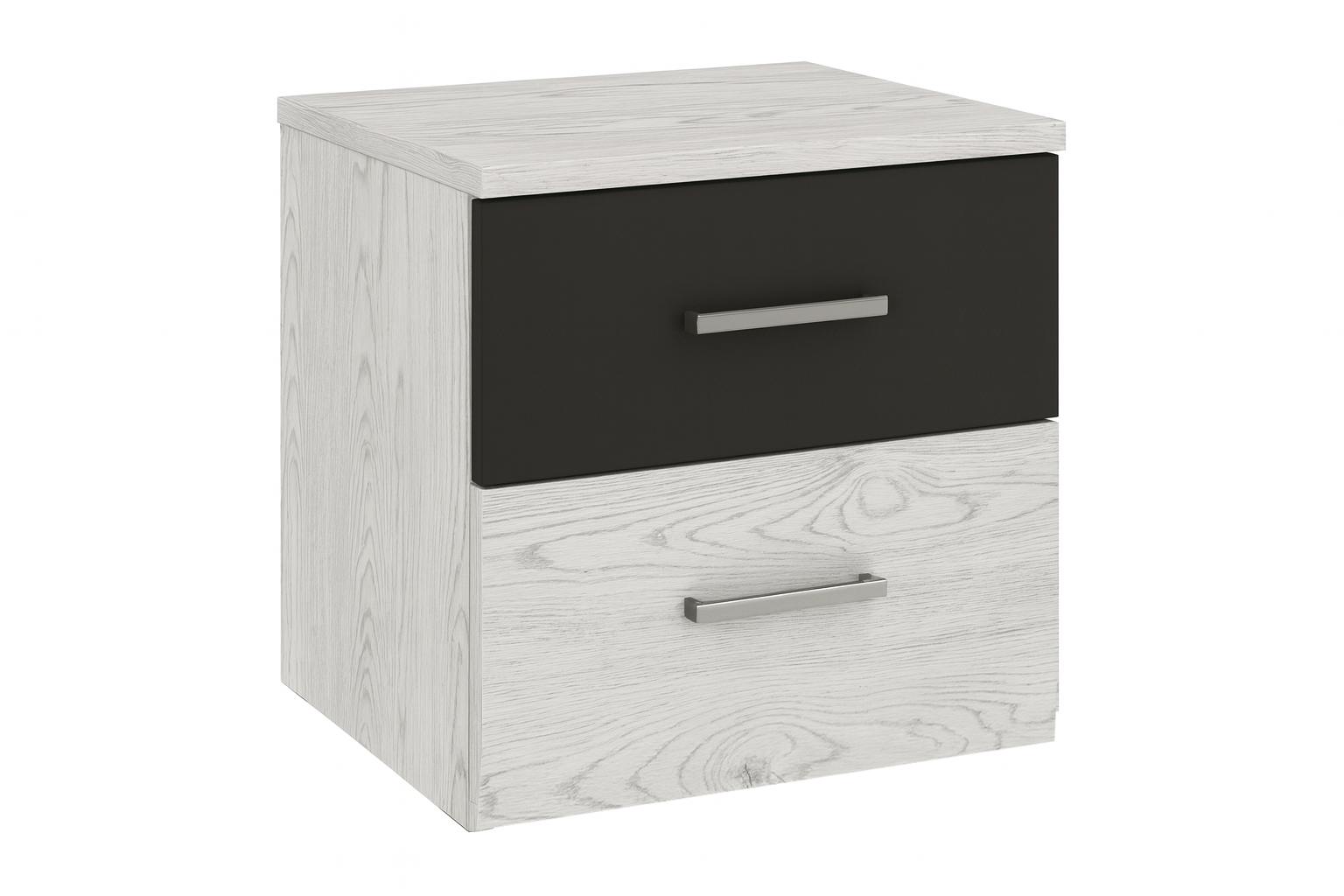 Noční stolek je vyroben v elegantním moderním stylu. Nabízí praktický úkožní prostor v podobě dvou šuplíků.