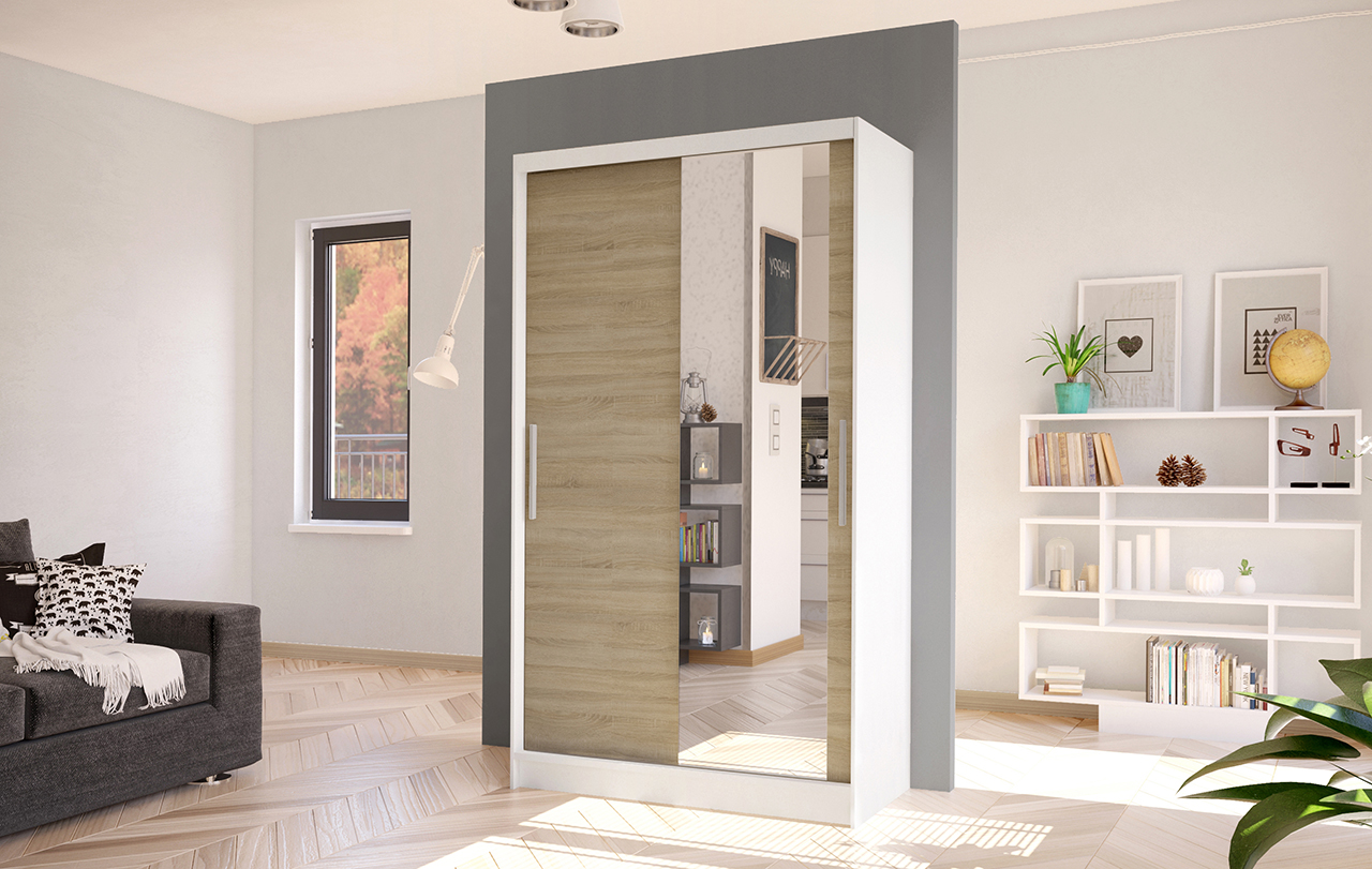Korpus i dveře jsou vyrobeny z odolné 16 mm laminované desky s ABS hranami, které zajišťují dlouhou životnost. Posuvné dveře se hladce pohybují po hliníkových vodicích lištách. Skříň je dostupná v několika atraktivních barevných provedeních, takže ji snadno sladíte s ostatním nábytkem.