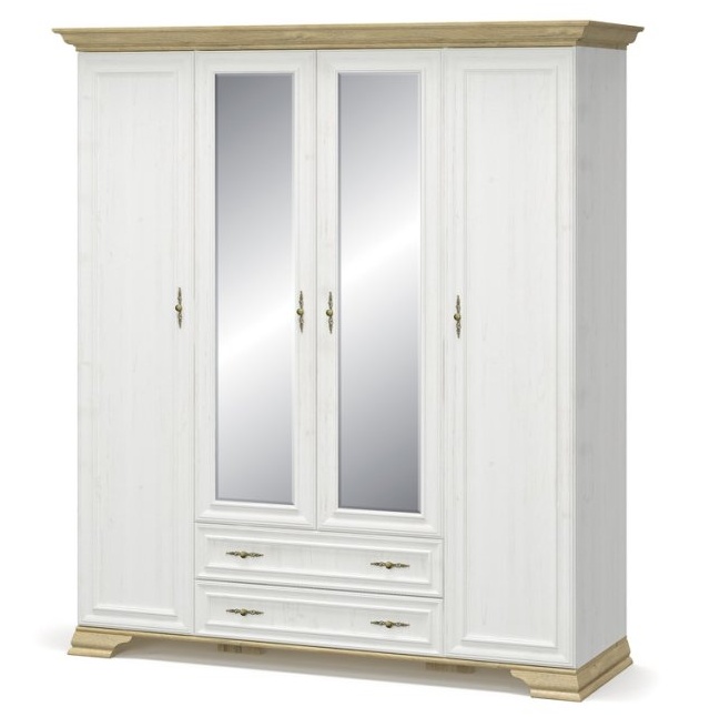 Skříň 4D2S se zrcadlem SCORDIA borovice andersen/zlatý dub