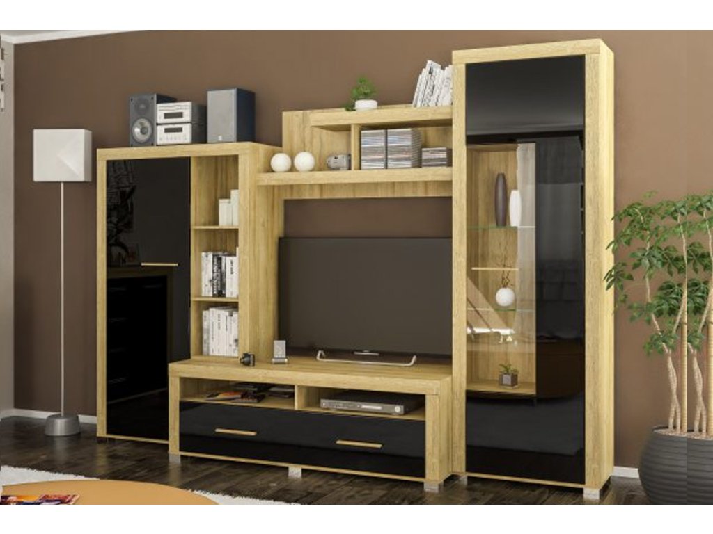 Obývací sestava NOEMA, dub zlatý/černý lesk