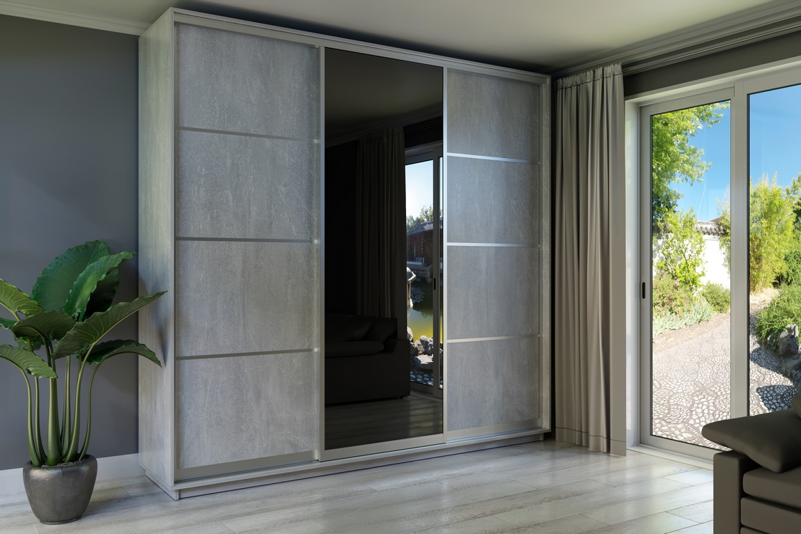 Šatní skříň INDUSTRIAL 250 šedá/grafit zrcadlo