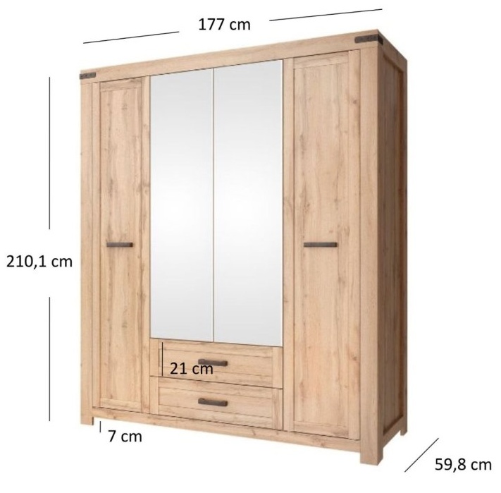 - Rozměry: (ŠxHxV): 177 x 59,8 x 210,1 cm.