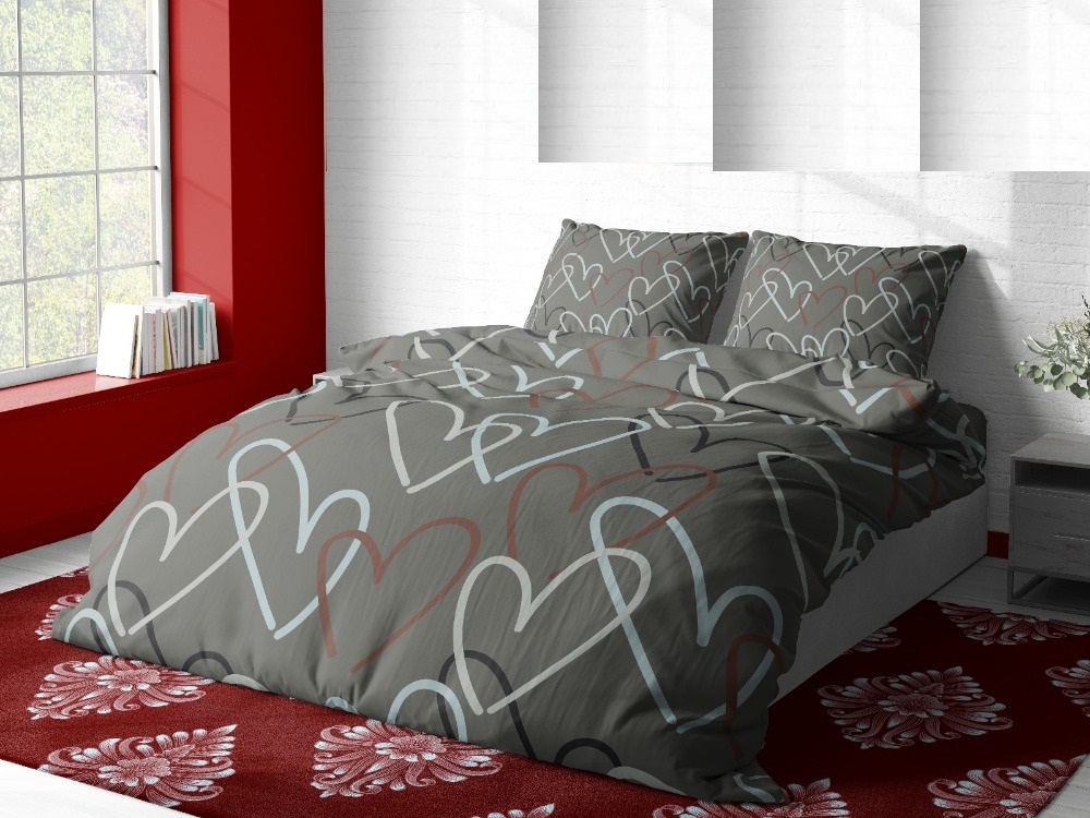 Flanelové povlečení Srdce šedé 140x200, 70x90 cm