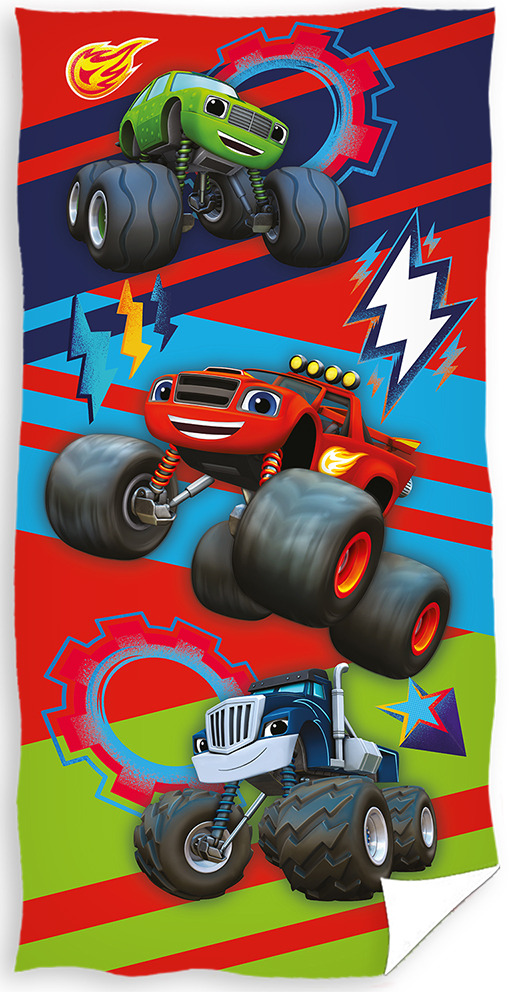 osuška s plamínkem, Daringtonem a OkurkouDětská osuška Plamínek a Čtyřkoláci Blaze a Darington, je vyrobena ze 100% bavlny