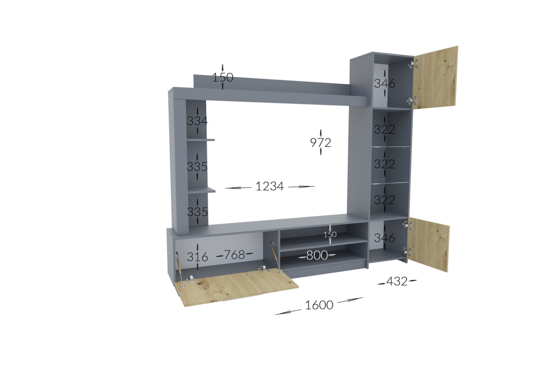 Obývací stěna se skládá z těchto částí: