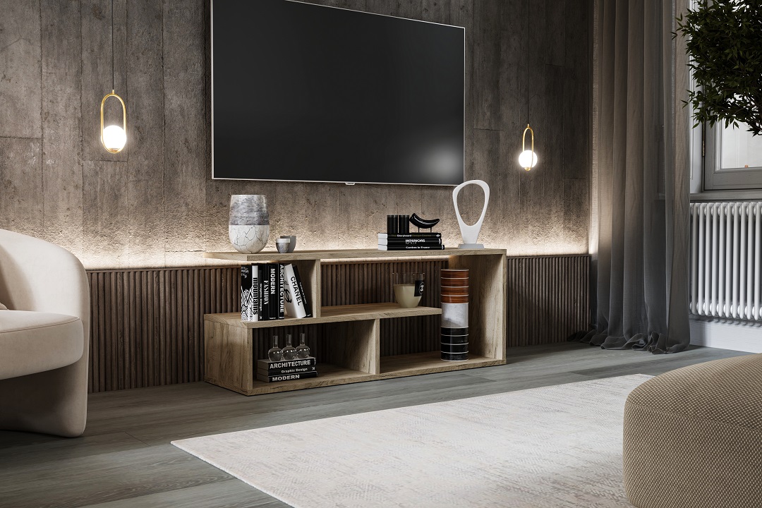 je televizní stolek v moderním a jednoduchém provedení. Barevné provedení: dub Craft. Disponuje jednou polickou pro odložení časopisů, ovladače na TV a podobně.