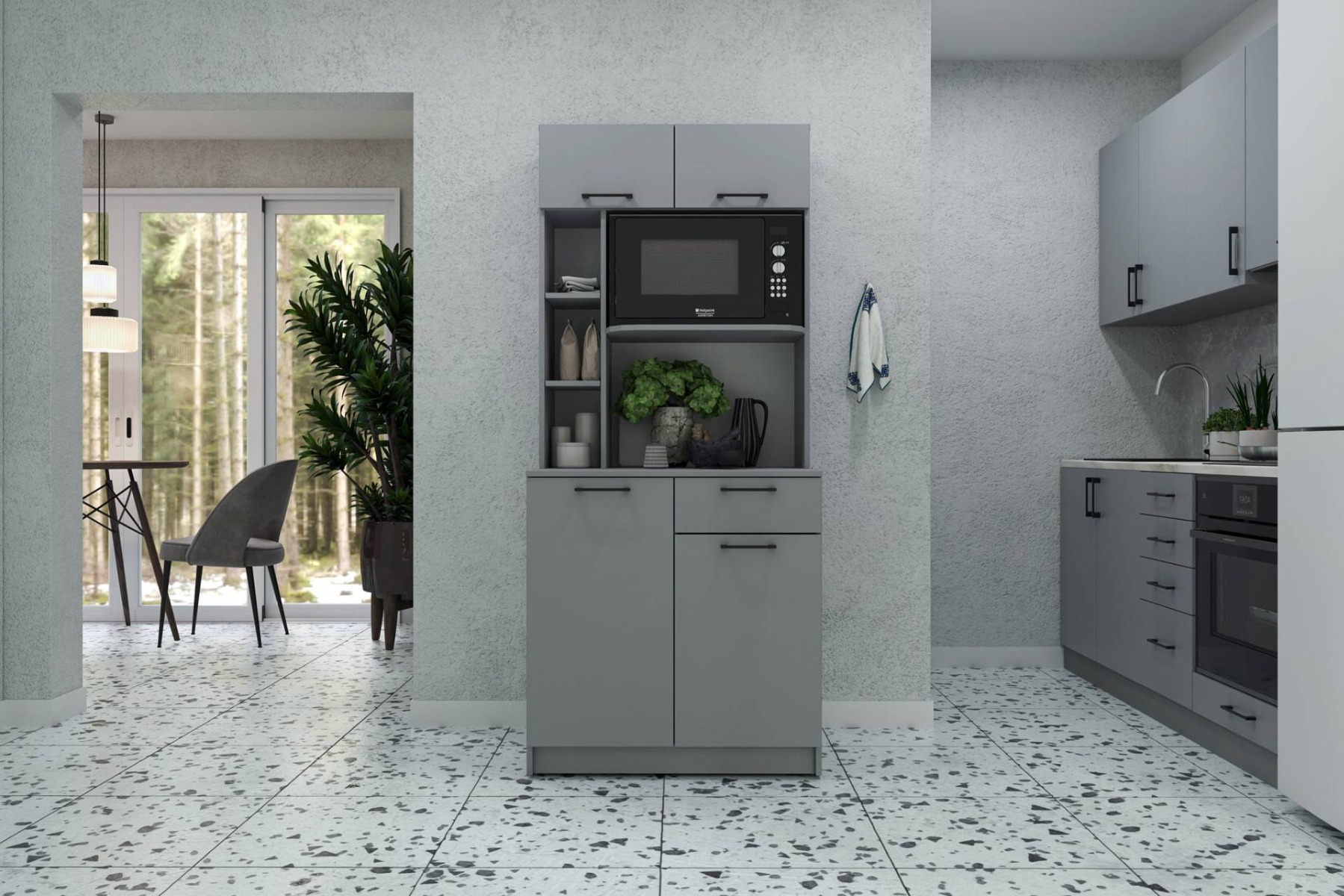 samostatná kuchyňská skříňka je ideálním kouskem do vaší kuchyně, která poslouží pro zvětšení úložného prostoru a v kuchyni působí stylově a nadčasově. Skříňka je kompaktním řešením i pro malé byty, studia, kanceláře nebo hotelové pokoje. Díky promyšlené organizaci prostoru je kuchyně vybavena pěti uzavřenými a pěti otevřenými policemi, praktickým prostorem pro mikrovlnnou troubu a výsuvnými policemi na odkládání věcí. kombinuje funkčnost a moderní design a harmonicky doplňuje jakýkoli interiér.