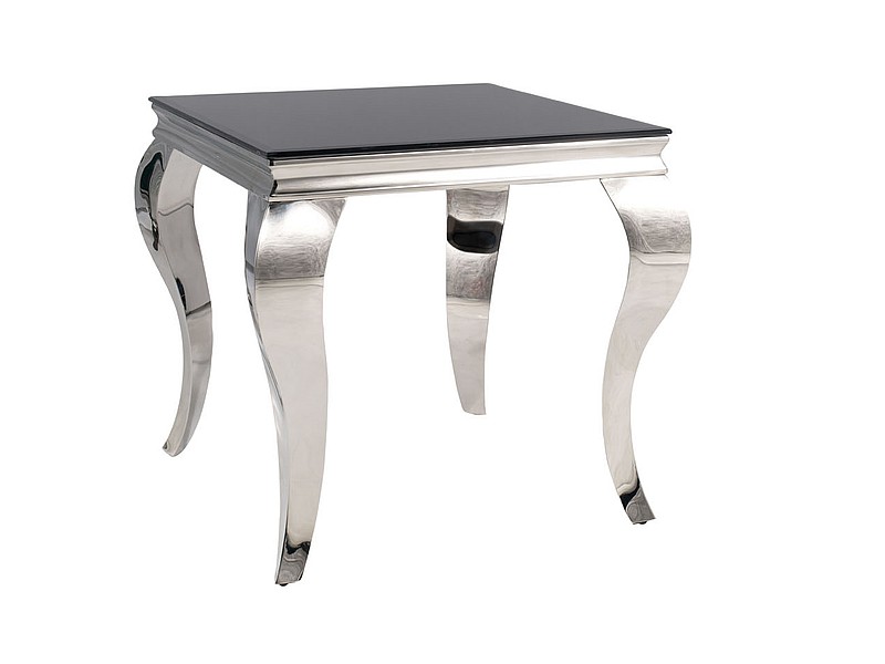 Konstrukce stolu je kovová, pochromovaná. Vrchní deska je z tvrzeného skla v černé barvě.