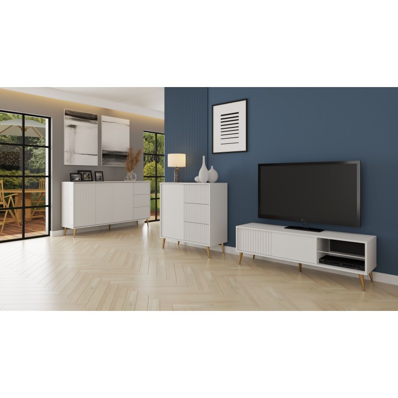Originální TV stolek, který upoutá pozornost svým moderním designem, matným provedením a stylovými nožičkami. Stolek je vyroben z kvalitní laminované desky, která je odolná a snadno se udržuje v čistotě.