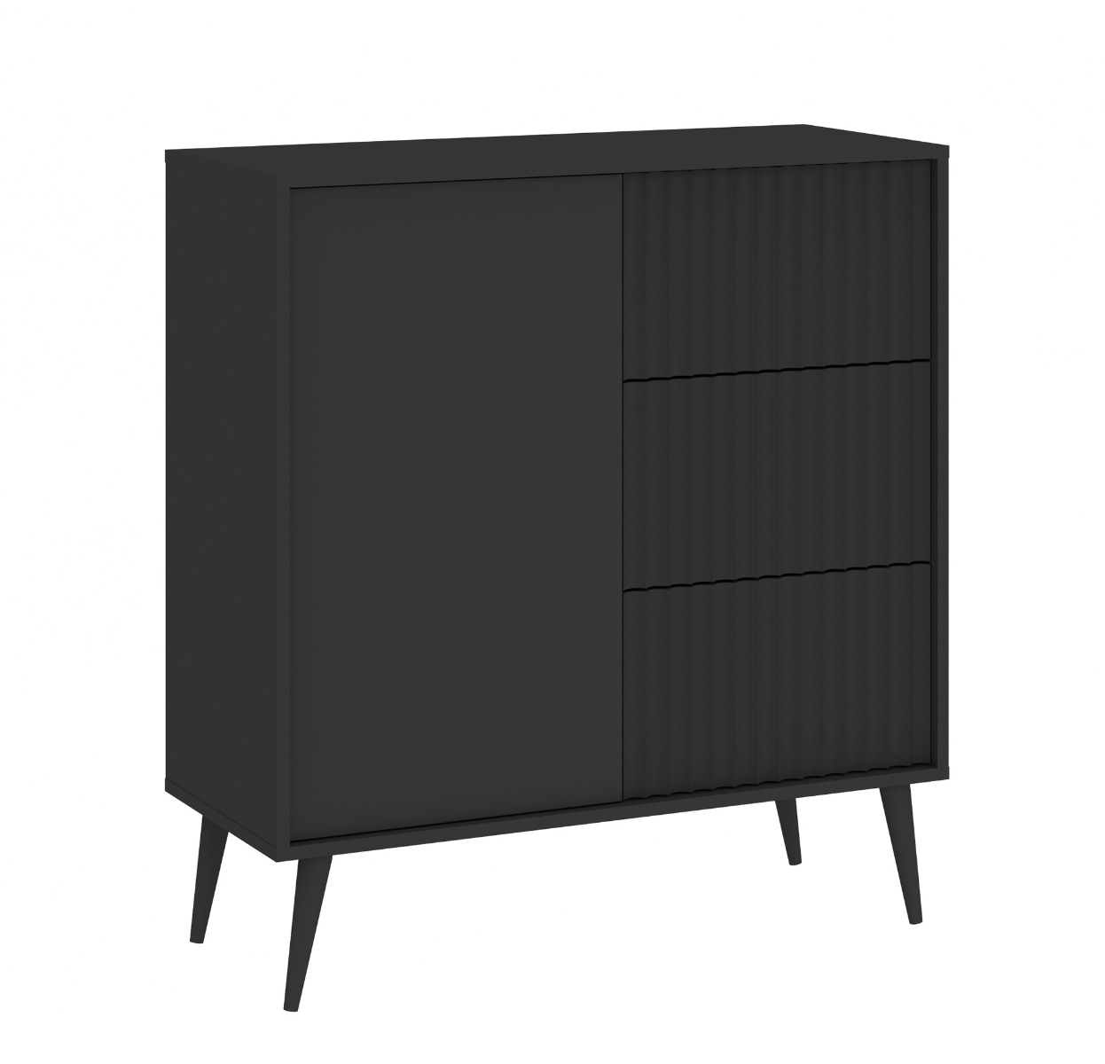 Originální komoda na nožičkách upoutá pozornost svým moderním designem, matným provedením a stylovými nožičkami. Je vyrobena z kvalitní laminované desky, která je odolná a snadno se udržuje v čistotě.