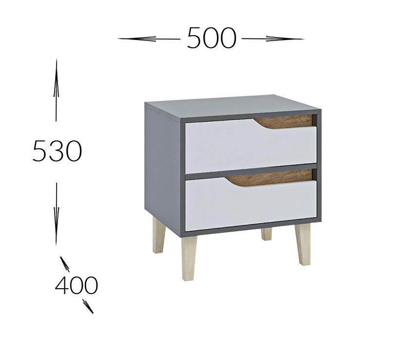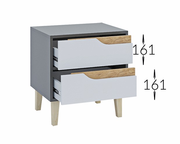 Noční stolek nabízí praktický úložný prostor v podobě 2 zásuvek. Je ideální do studentských pokojů nebo ložnice.