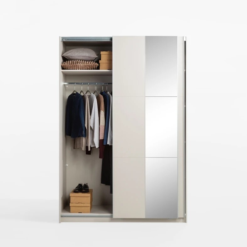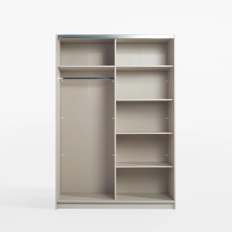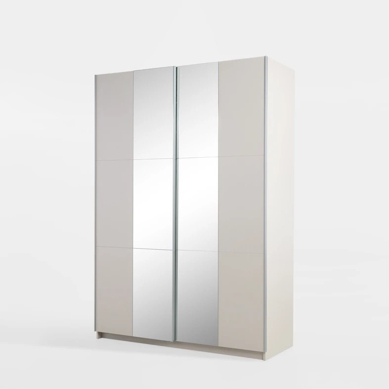 Moderní šatní skříň je nejen elegantním prvkem do každé moderní ložnice, ale současně poskytuje i bohatý úložný prostor. Díky nadčasové barvě se v interiéru snadno kombinuje a opticky zvětšuje prostor. Černé úchyty jí dodávají elegantní design. Nabízí ideální úložný prostor, aniž by zabíral příliš mnoho místa. Její kašmírová úprava dodá interiéru teplý a jedinečný charakter.