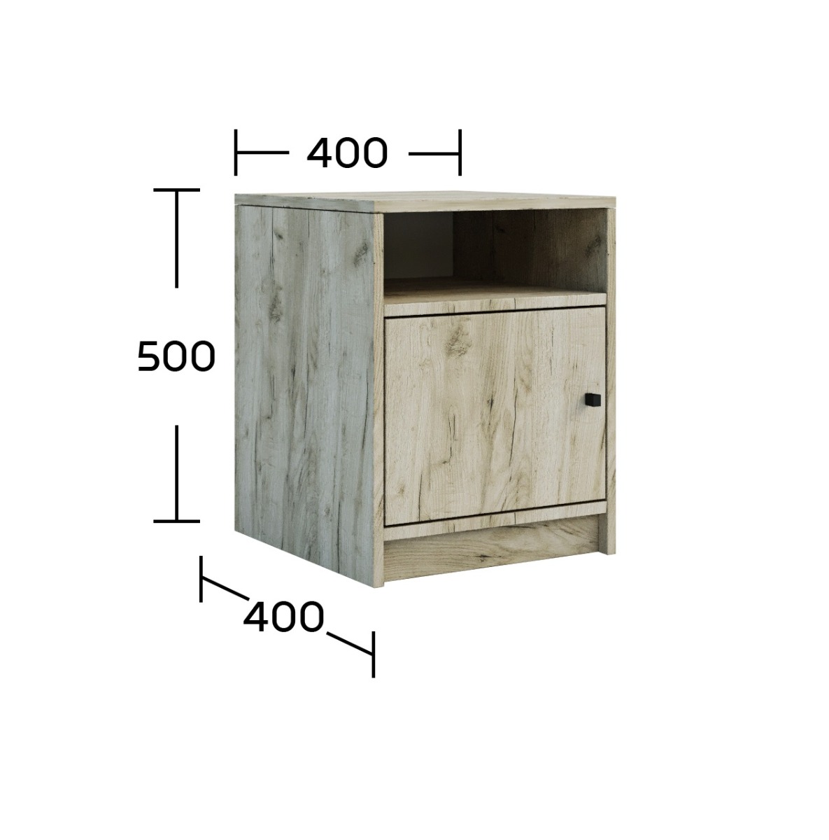 je noční stolek v moderním a zároveň jednoduchém provedení. Má jednu otevřený polici. Noční stolek je jednodvéřový. Barevné provedení: dub Craft.