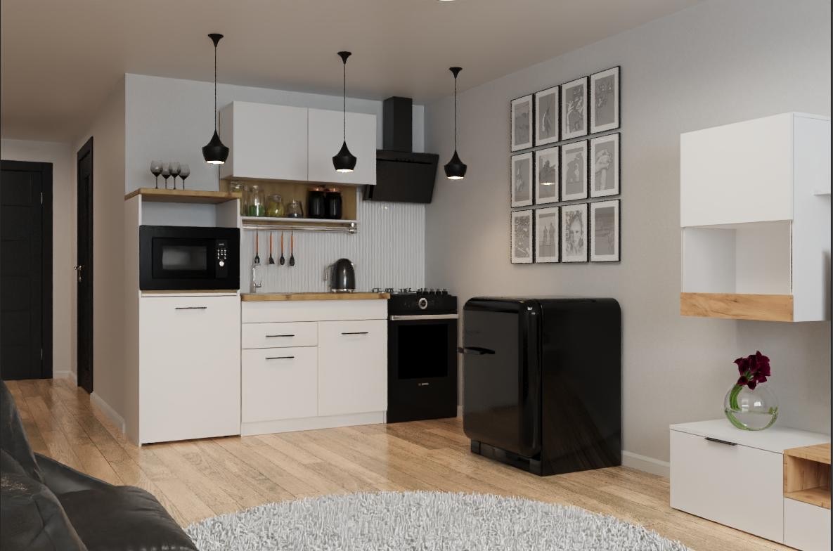 Kuchyňská linka 160 kombinuje moderní design s praktickým uspořádáním. Její závěsná skříňka s odkapávačem umožňuje efektivní sušení nádobí, zatímco skříňka s dřezem poskytuje vše potřebné k mytí. Multifunkční skříňka nabízí prostor pro mikrovlnku nebo troubu, což přidává další úroveň praktičnosti a pohodlí. Pro větší pohodlí a styl je součástí LED podsvícení.