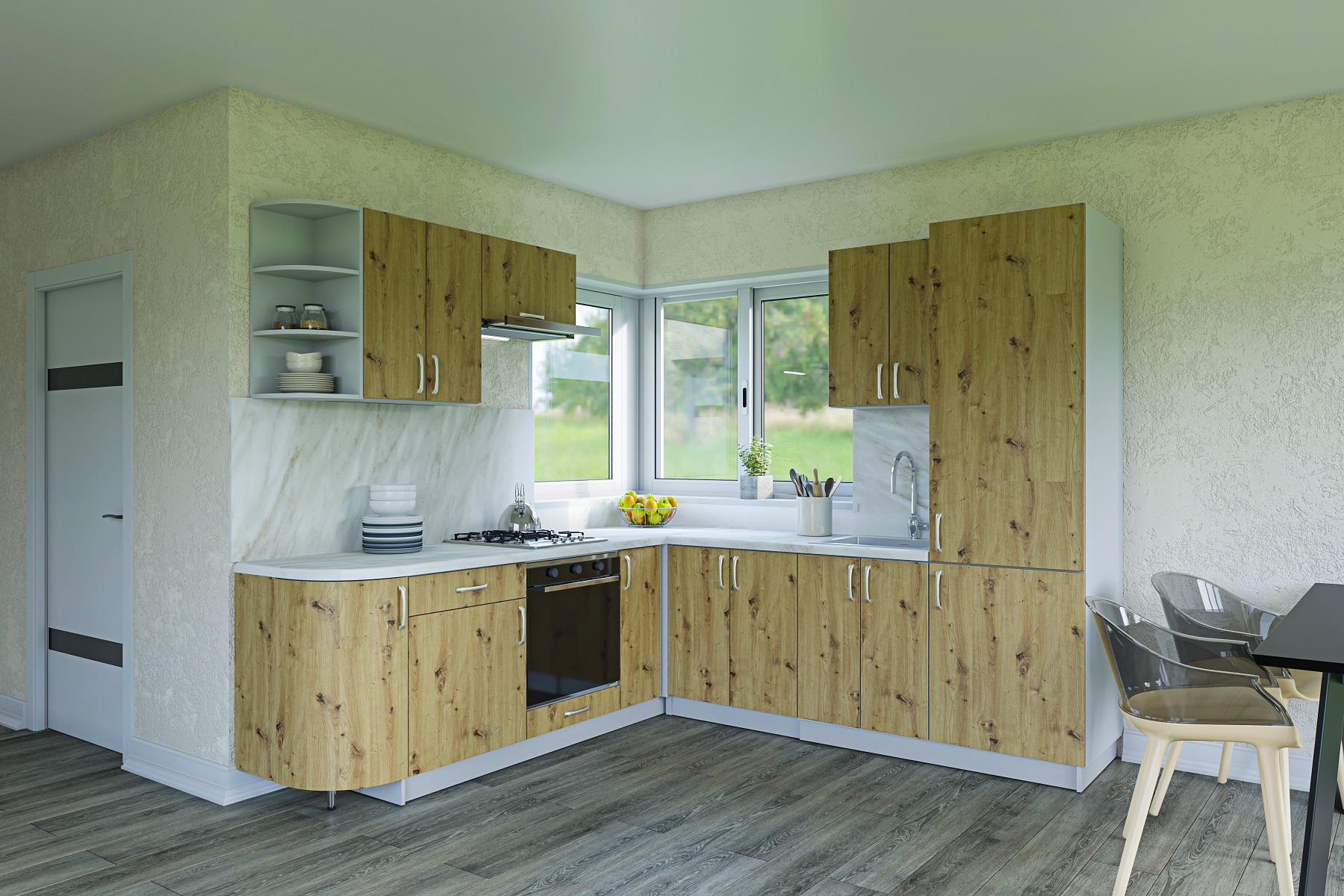 MIRA 240 rohová kuchyně 240/260, dub Artisan