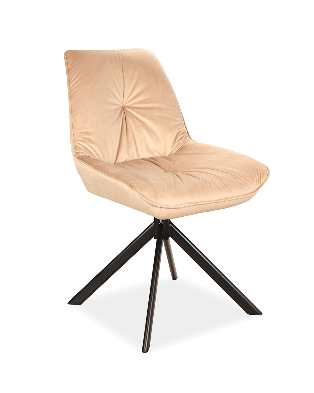 Křeslo je čalouněno kvalitní látkou Bluvel 28 - krémová. Nohy židle jsou kovové, v černé barvě.