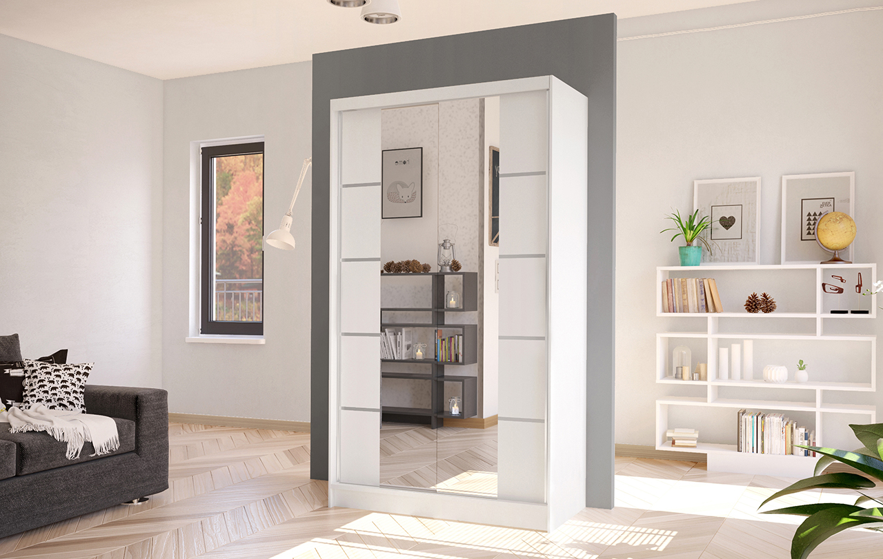 Korpus i dveře jsou vyrobeny z odolné 16 mm laminované desky s ABS hranami, které zajišťují dlouhou životnost. Posuvné dveře se hladce pohybují po hliníkových vodicích lištách. Skříň je dostupná v několika atraktivních barevných provedeních, takže ji snadno sladíte s ostatním nábytkem.