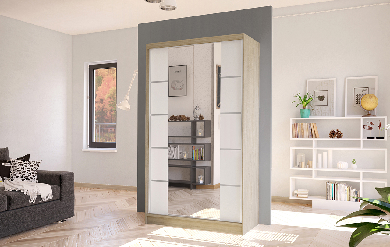 Korpus i dveře jsou vyrobeny z odolné 16 mm laminované desky s ABS hranami, které zajišťují dlouhou životnost. Posuvné dveře se hladce pohybují po hliníkových vodicích lištách. Skříň je dostupná v několika atraktivních barevných provedeních, takže ji snadno sladíte s ostatním nábytkem.