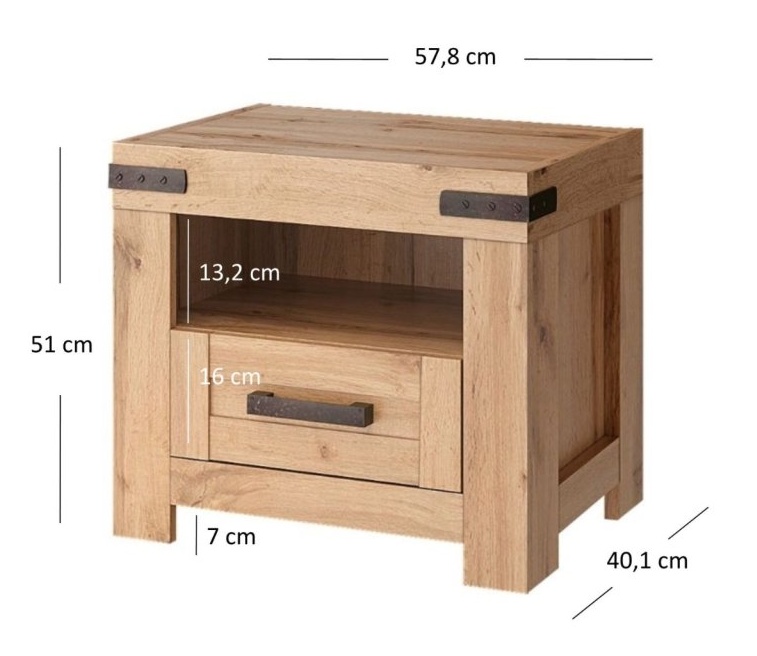 - Noční stolek 1 ks (ŠxHxV): 57,8 x 40,1 x 51 cm