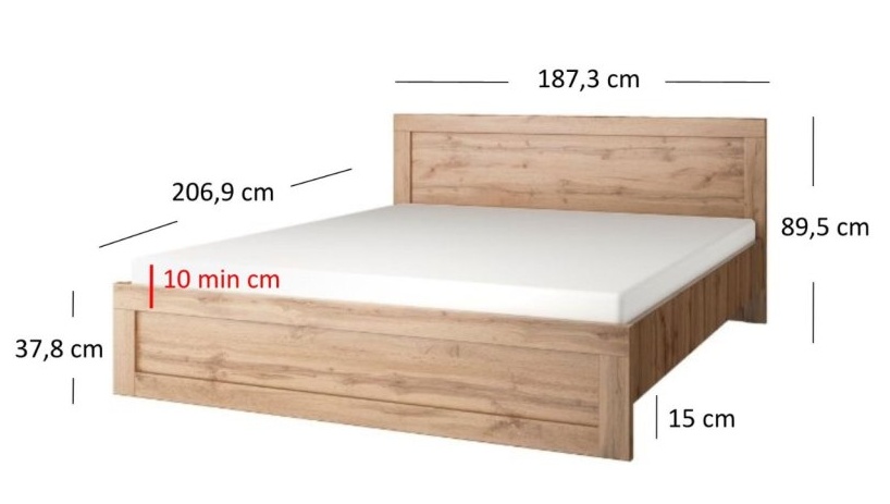 - Manželská postel 180 s roštem (ŠxHxV): 187,3 x 206,9 x 89,5 cm (vhodná matrace 180 x 200 cm)