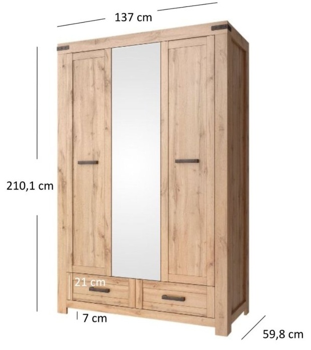 - Šatní skříň 3D2S (ŠxHxV): 137 x 59,8 x 210,1 cm